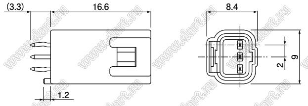 Вилка в плату вертикальная; шаг 2,00мм; 3-конт.; медный сплав луженый / полибутиентерефталат, цвет натуральный