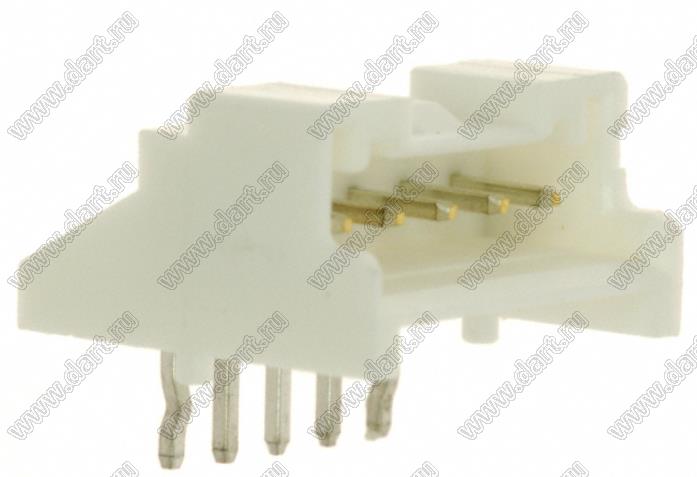 Вилка на плату угловая; шаг 2,00мм; 5-конт.; медный сплав луженый / полибутиентерефталат, цвет натуральный