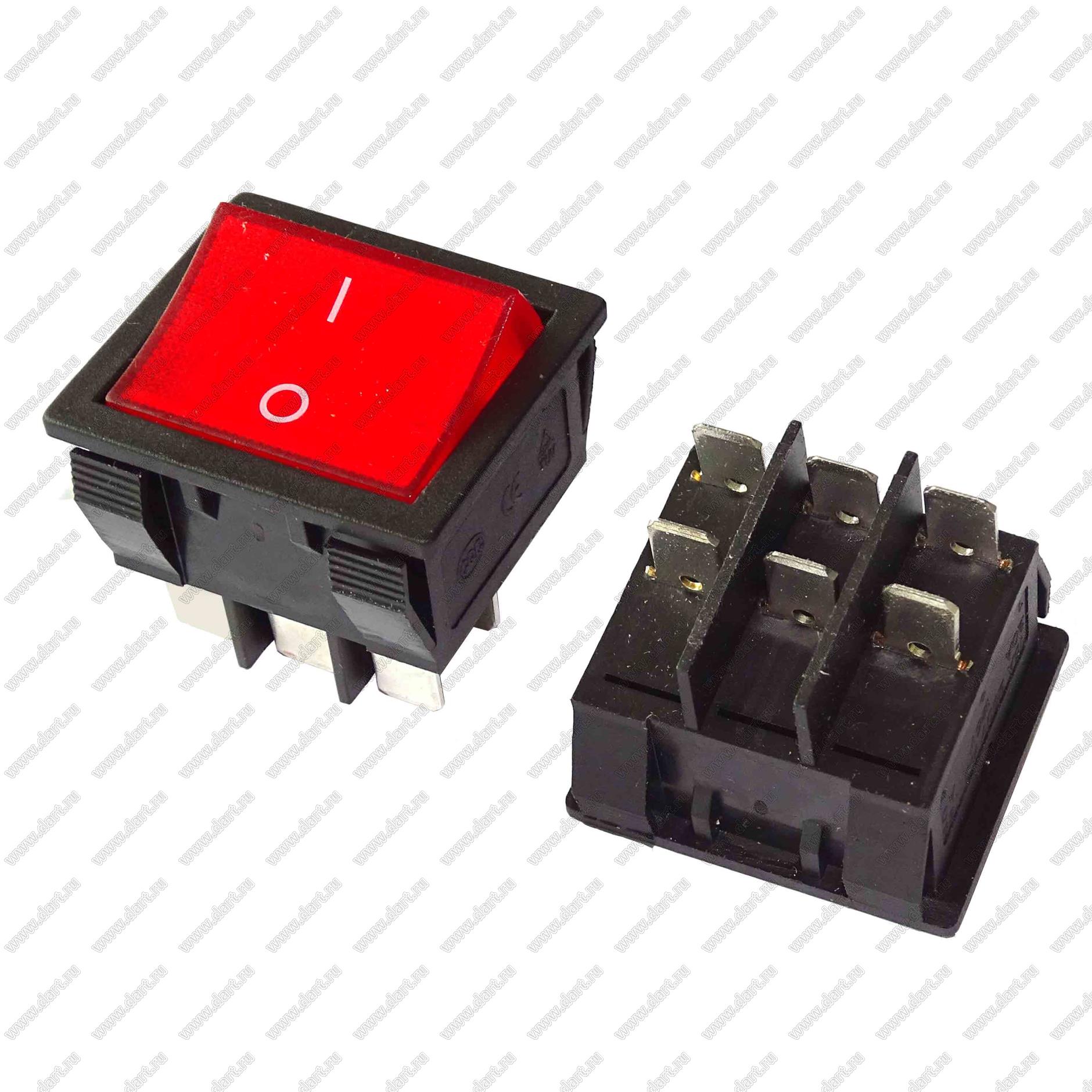 D9T65 переключатель клавишный, черный корпус/красная клавиша с подсветкой, ON-OFF, 32x30 мм   D9T65