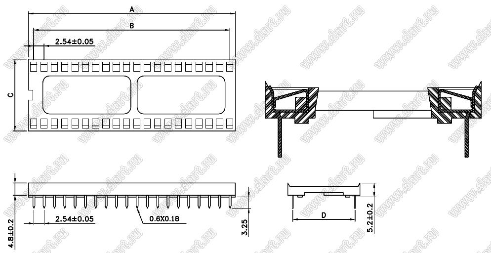 Каталог > Электронные компоненты, радиодетали > Разъёмы (соединители, переходники) > Панельки для микросхем > DS1009 (SCS/SCL) серии > SCS-22 (2227-22-03)