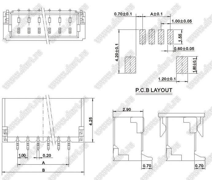 Каталог > Электронные компоненты, радиодетали > Разъёмы (соединители, переходники) > Разъемы кабель-плата > Шаг 1,00мм > A1001-SMT (SH) серия > A1001-SMT-08A (BM08B-SRSS-TB)