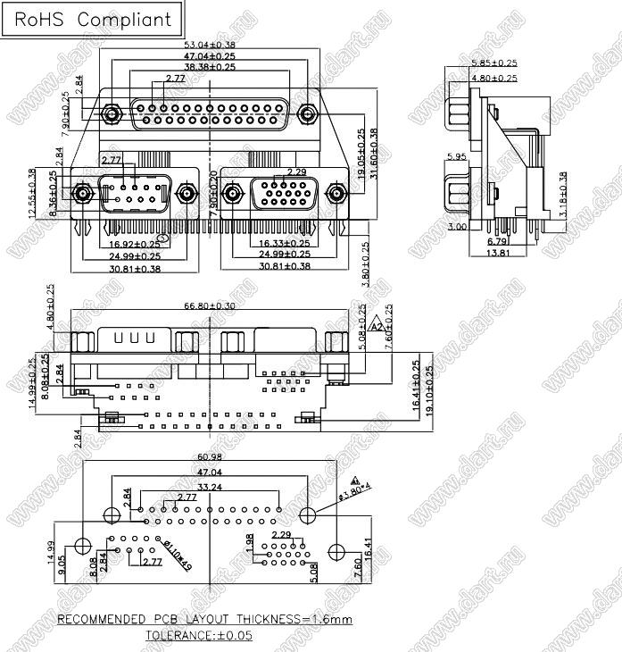 Каталог > Электронные компоненты, радиодетали > Разъёмы (соединители, переходники) > Разъемы D-SUB > DS1082-01 (5511) D-SUB серия > 5511-25S-09PHD15S