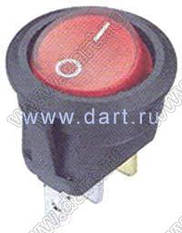 Переключатель клавишный ON-OFF; D=23,0мм; 6A 250VAC/10A 125VAC; толкатель красный/корпус черный; с подсветкой; маркировка "O I"; терминалы 4,8x0,8мм