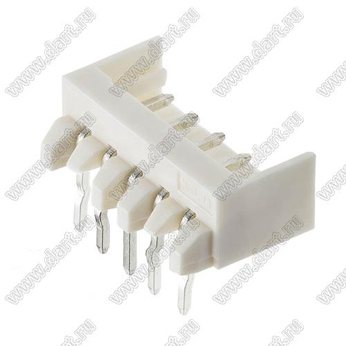 Вилка однорядная угловая на плату; шаг 2,00мм; 5-конт.; нейлон натуральный (бежевый)/латунь луженая