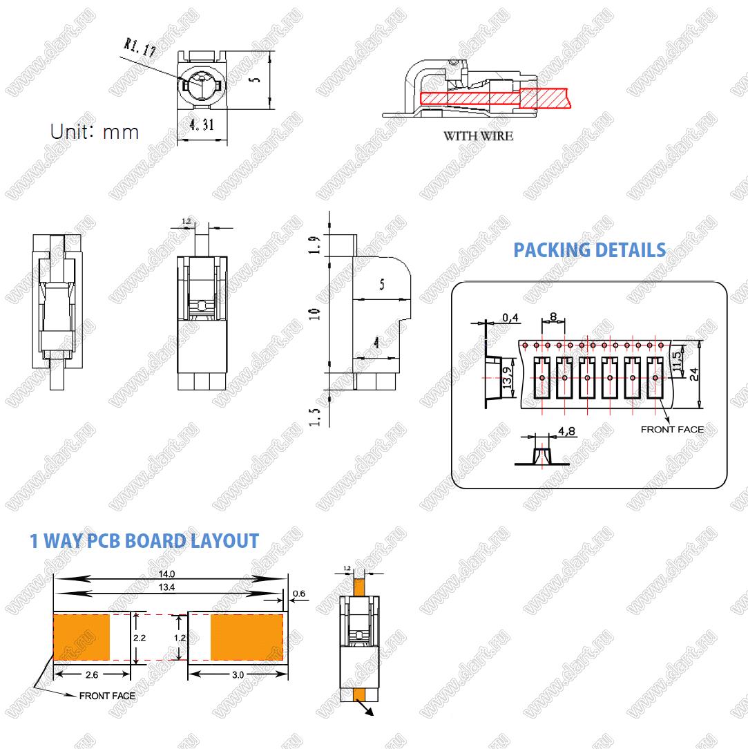 Клеммник (клеммник) для поверхностного монтажа 1 конт.