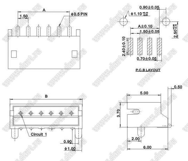 Каталог > Электронные компоненты, радиодетали > Разъёмы (соединители, переходники) > Разъемы кабель-плата > Шаг 1,50мм > ZH (A1501) серия > A1501-II-SMT-07AW (S7B-ZR-SM2-TF)