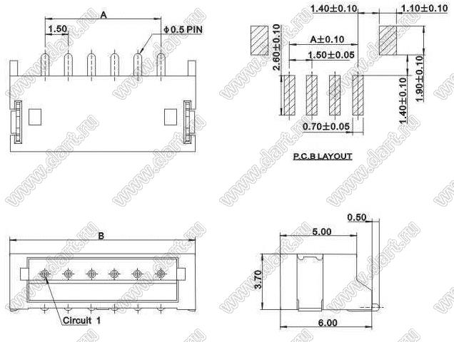 Каталог > Электронные компоненты, радиодетали > Разъёмы (соединители, переходники) > Разъемы кабель-плата > Шаг 1,50мм > ZH (A1501) серия > A1501-I-SMT-03AW (S3B-ZR-SM4A-TF)