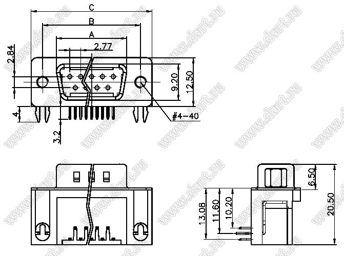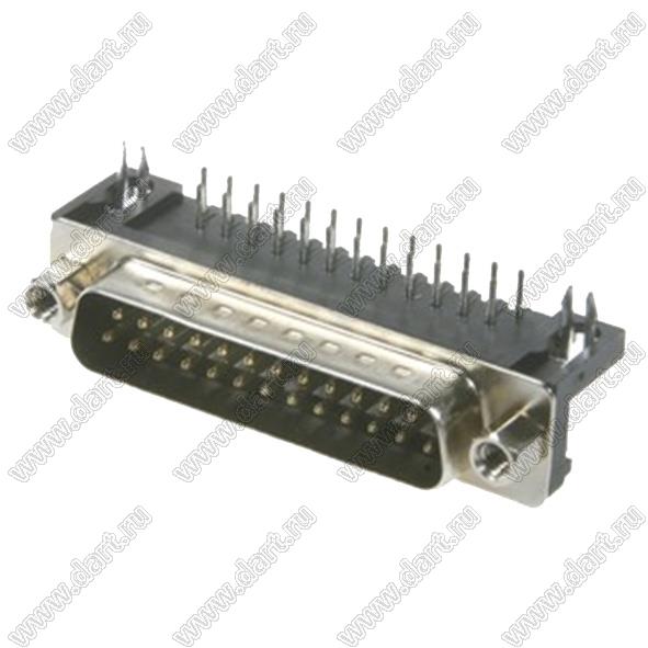 Каталог > Электронные компоненты, радиодетали > Разъёмы (соединители, переходники) > Разъемы D-SUB > DS1037-xxX (5504-xxX, DRB-xxX) серия: вилки и розетки D-SUB угловые для пайки в плату > DS1037-01-25M-A (5504-25P-B, DRB-25MB)