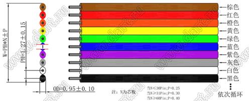 Каталог > Провода, шнуры, кабели > Кабели, жгуты, провода > Кабели информационные > Шлейфы плоские IDC > Шлейфы плоские IDC, шаг 1,27 мм > MC(HM)-34P- UL2651#28AWG-7x0.127TS-1.27 DS1058-34M28 OD: 0.95mm