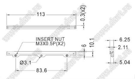 направляющая платы; L=113,0мм; PC + ABS (UL); черный