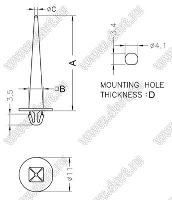 Каталог > Фурнитура для электронных устройств > Фиксаторы плат, стойки межплатные > Фиксаторы под круглое отверстие > Фиксаторы с защелкой в плату > MCF серия > MCFG-35810
