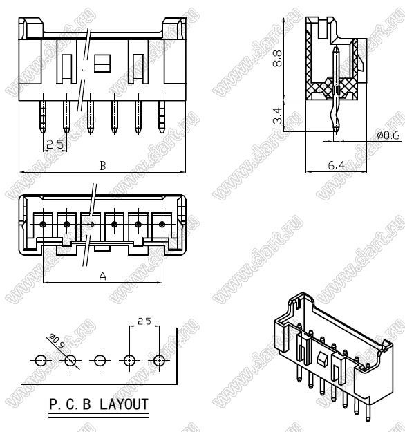 Каталог > Электронные компоненты, радиодетали > Разъёмы (соединители, переходники) > Разъемы кабель-плата > Шаг 2,50мм > A2506 серия > A2506-WV09