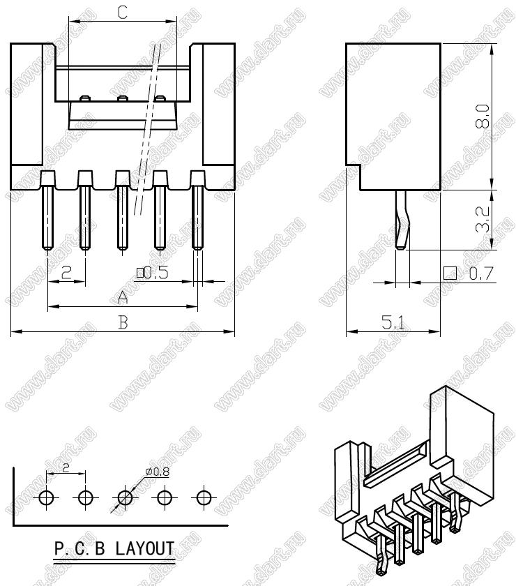 Каталог > Электронные компоненты, радиодетали > Разъёмы (соединители, переходники) > Разъемы кабель-плата > Шаг 2,00мм > двухрядные > A2005 (PHB) серия > A2005-WV09-K