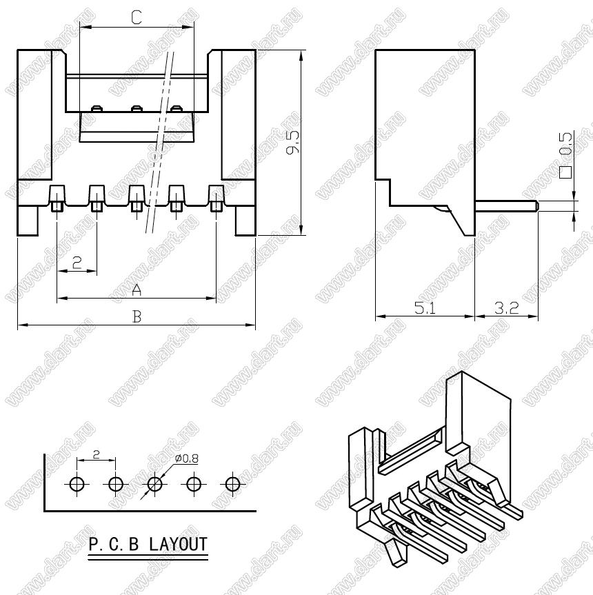 Каталог > Электронные компоненты, радиодетали > Разъёмы (соединители, переходники) > Разъемы кабель-плата > Шаг 2,00мм > двухрядные > A2005 (PHB) серия > A2005-WR07