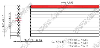 Каталог > Провода, шнуры, кабели > Кабели, жгуты, провода > Кабели информационные > Шлейфы плоские IDC > Шлейфы плоские IDC, шаг 0,635 мм > GR(HT)-60P-AWM2678#30AWG-7x0.1-0.635 OD: 0.68mm