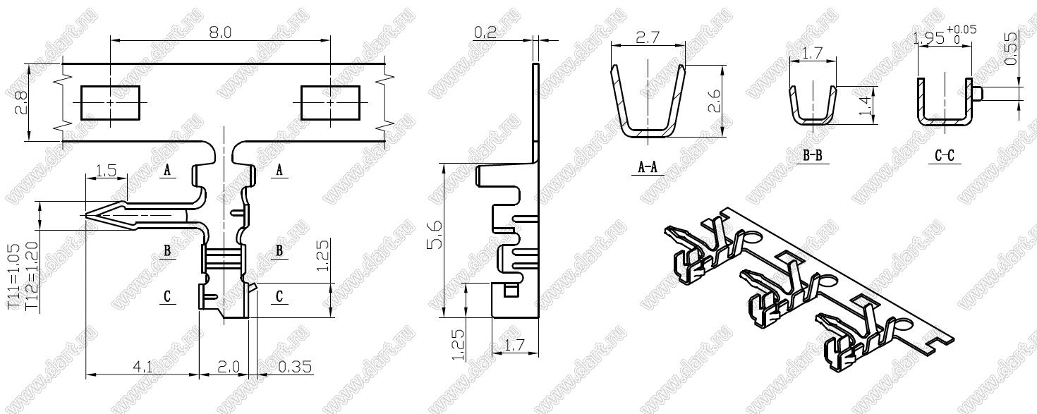 Каталог > Электронные компоненты, радиодетали > Разъёмы (соединители, переходники) > Разъемы кабель-плата > Шаг 2,50мм > B2502 серия > B2502-T11 (JC25)