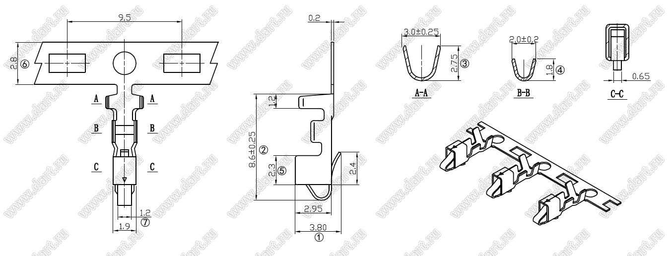 Каталог > Электронные компоненты, радиодетали > Разъёмы (соединители, переходники) > Разъемы кабель-кабель > Шаг 2,5мм > C2501/2502 серия > C2502-TP2T21