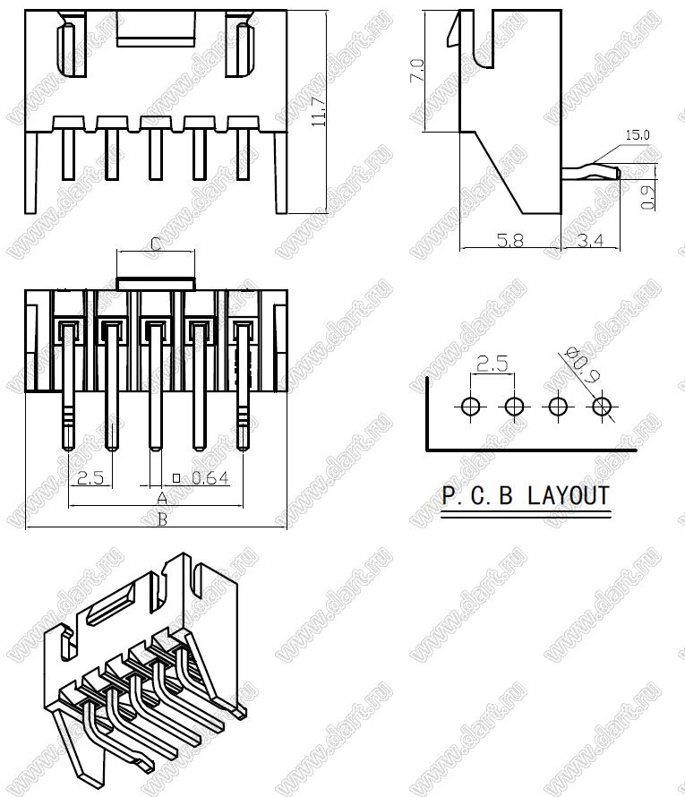 Каталог > Электронные компоненты, радиодетали > Разъёмы (соединители, переходники) > Разъемы кабель-плата > Шаг 2,50мм > A2507 (XHD) серия > A2507-WR15-K