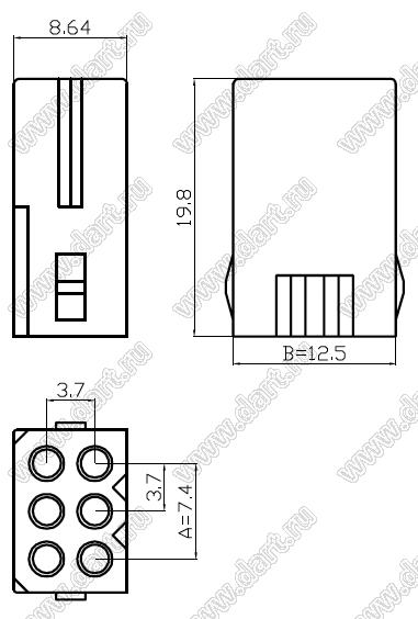 Каталог > Электронные компоненты, радиодетали > Разъёмы (соединители, переходники) > Разъемы кабель-кабель > Шаг 3,68мм > C3681/C3682 серия > C3681-H03X2