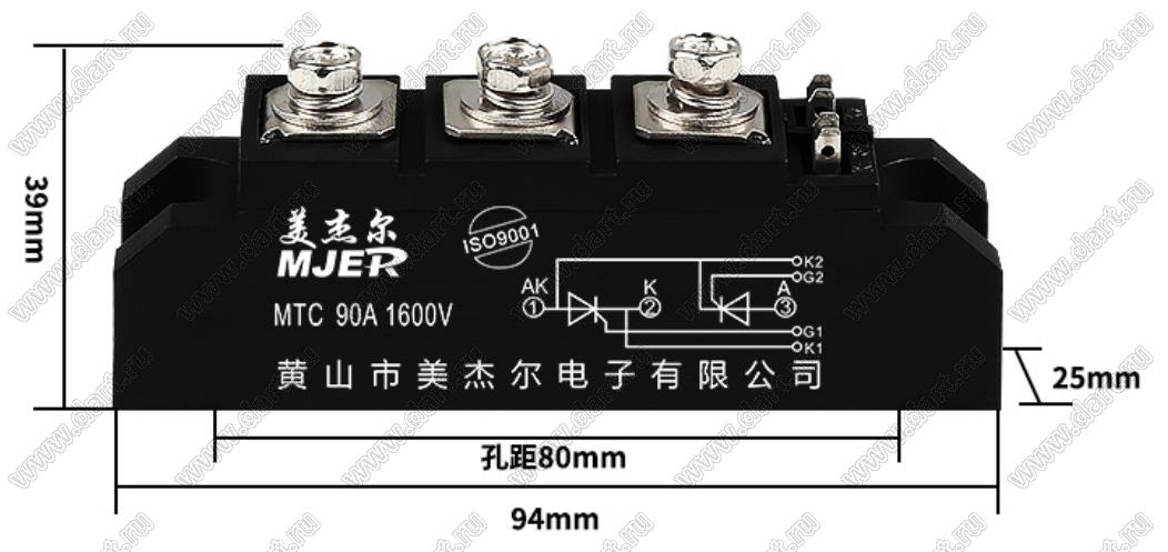 Каталог > Электронные компоненты, радиодетали > Модули силовые > Модули полупроводниковые силовые тиристорные > MTC... серия > MTC90A1600V-4