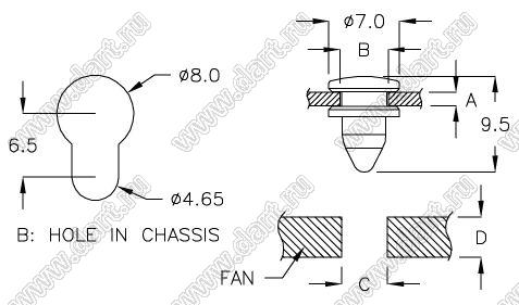 Диаметр отверстия в плате C: 4,5 мм