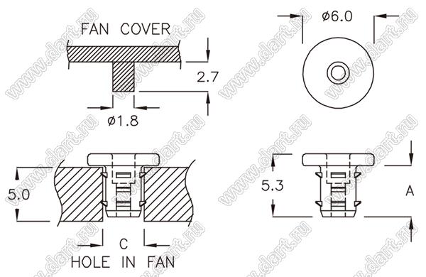 крепежный пистон-амортизатор для вентилятора; термопластичный эластомер TPE; черный