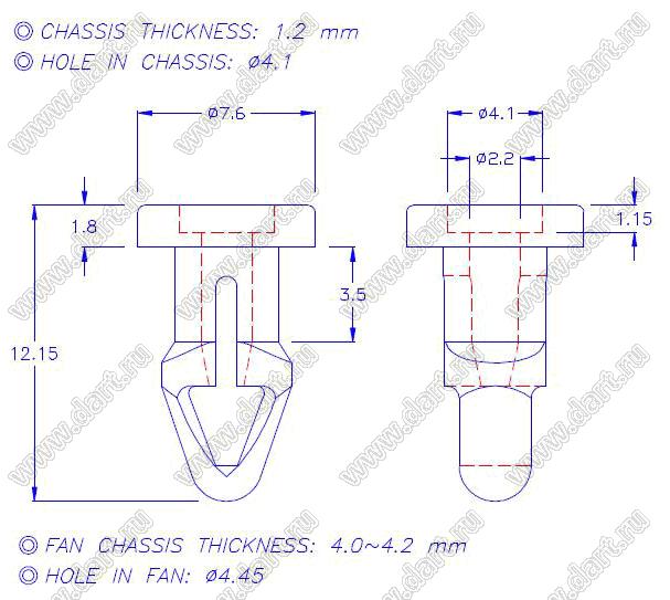 крепежный пистон-амортизатор для вентилятора; нейлон-66 (UL) + TPE; черный