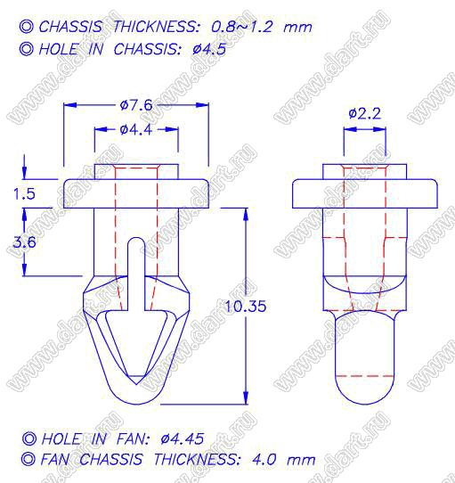Диаметр отверстия в шасси B: 4,5 мм