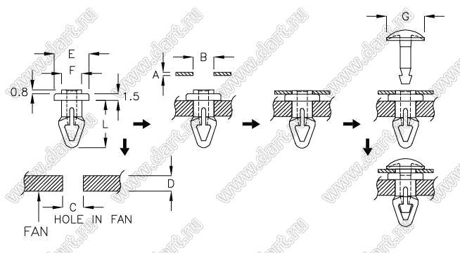 Диаметр отверстия в плате C: 4,45 мм
