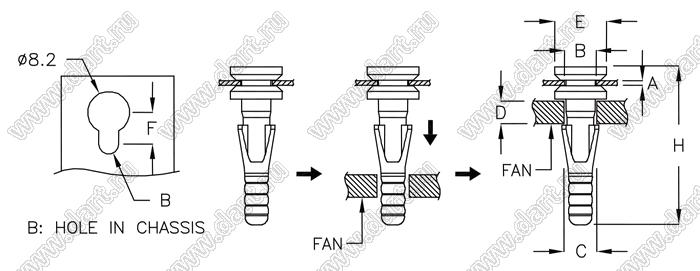 Диаметр отверстия в шасси B: 4,5 мм