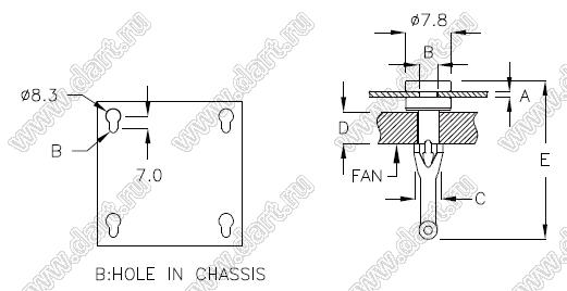 Диаметр отверстия в шасси B: 4,0 мм