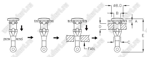 крепежный пистон-амортизатор для вентилятора; термопластичный эластомер TPE; черный