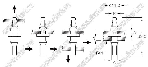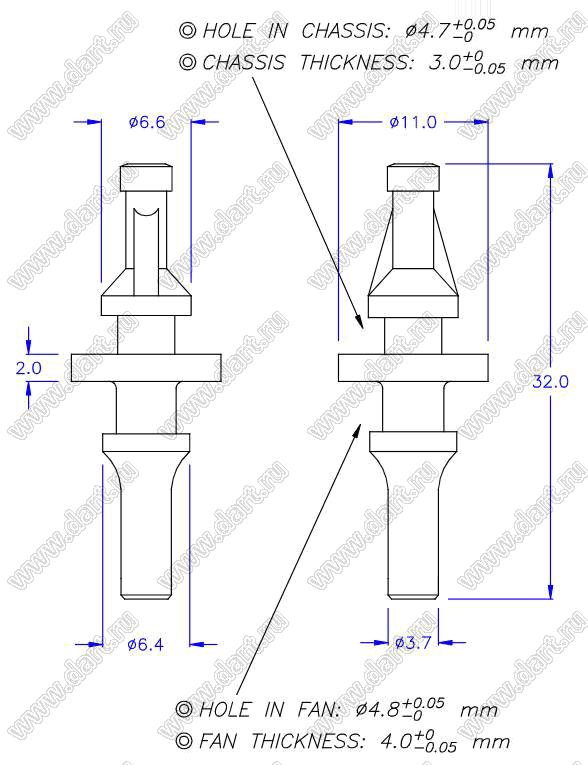 крепежный пистон-амортизатор для вентилятора; силикон; черный