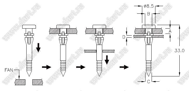 Диаметр отверстия в плате C: 4,5 мм