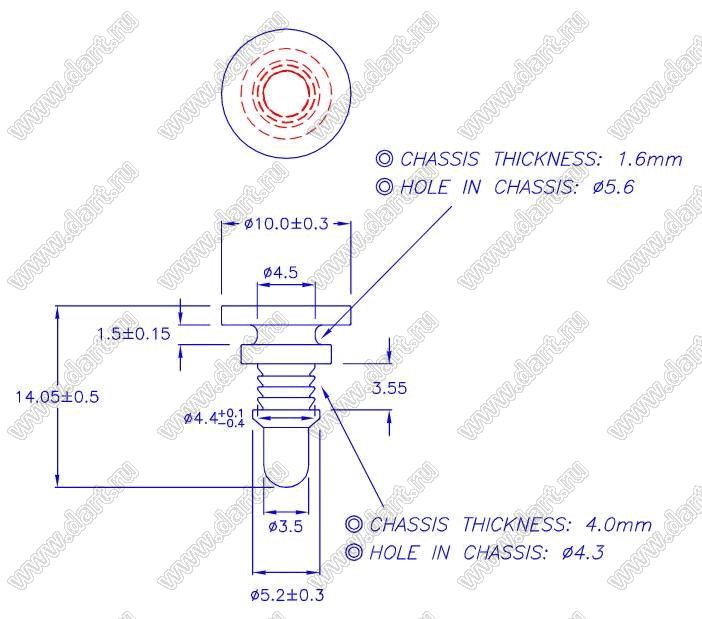 Диаметр отверстия в шасси B: 5,6 мм