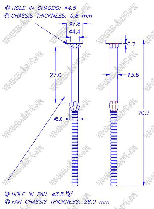 Диаметр отверстия в шасси B: 4,5 мм
