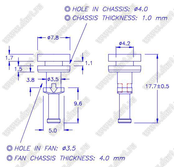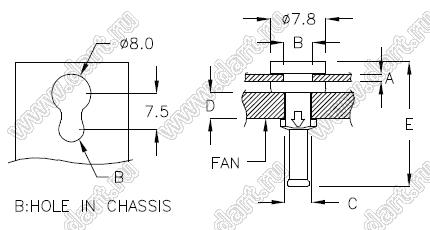 Диаметр отверстия в шасси B: 4,0 мм