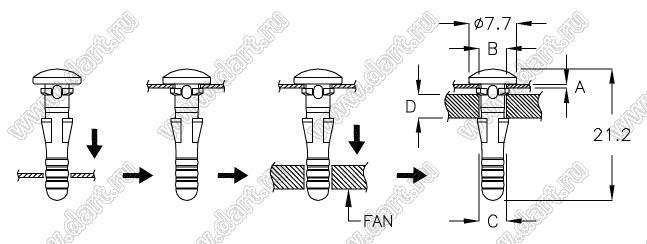 Диаметр отверстия в плате C: 4,0 мм