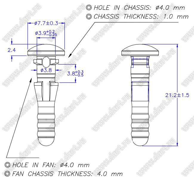 Диаметр отверстия в шасси B: 4,0 мм
