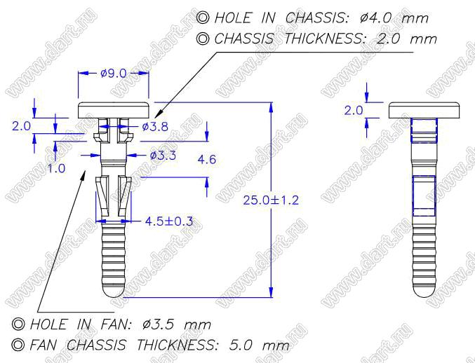 Диаметр отверстия в шасси B: 4,0 мм
