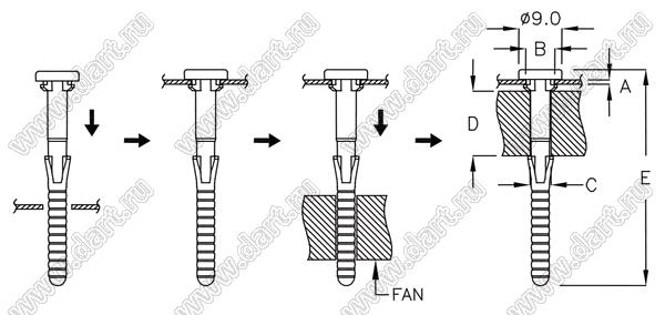 крепежный пистон-амортизатор для вентилятора; силикон; черный