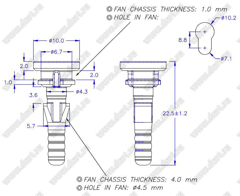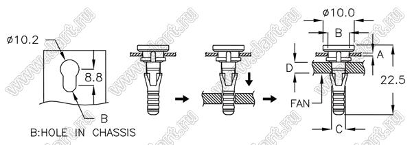 Диаметр отверстия в шасси B: 7,1 мм