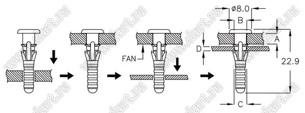 крепежный пистон-амортизатор для вентилятора; термопластичный эластомер TPE; черный