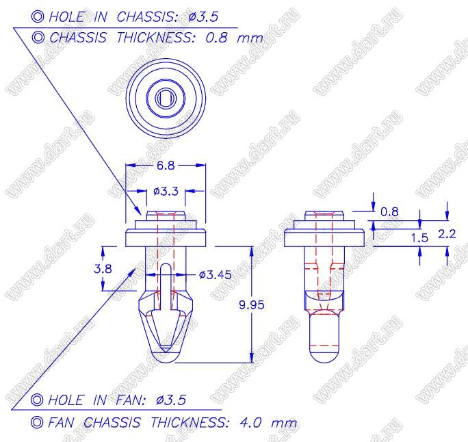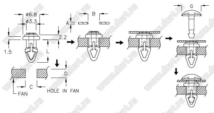 крепежный пистон-амортизатор для вентилятора; нейлон-66 (UL) + TPE; черный