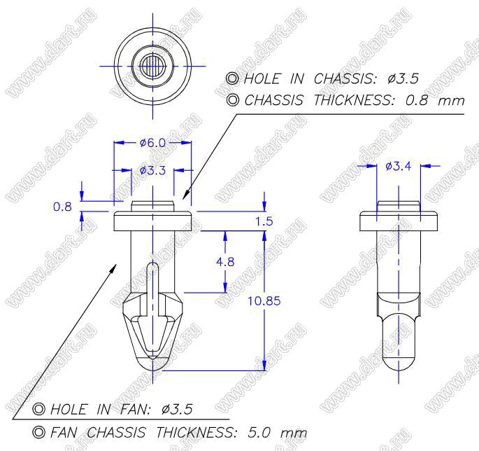 крепежный пистон-амортизатор для вентилятора; нейлон-66 (UL) + TPE; черный