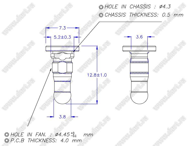 крепежный пистон-амортизатор для вентилятора; термопластичный эластомер TPE; черный