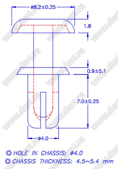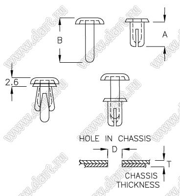 пистон монтажный; A=7,0мм; нейлон-66 (UL); черный