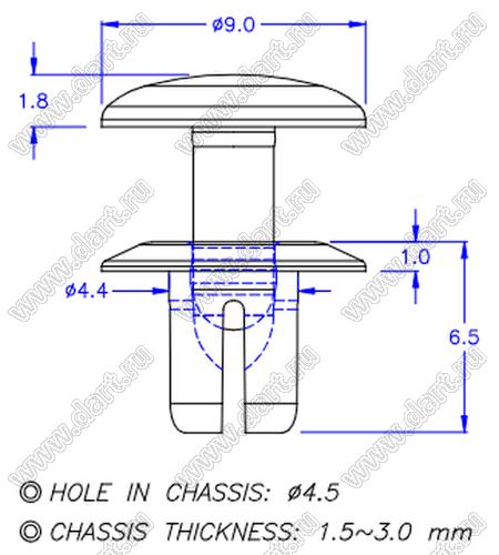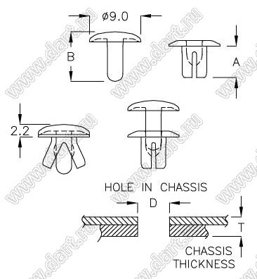 пистон монтажный; A=5,5мм; нейлон-66 (UL); черный