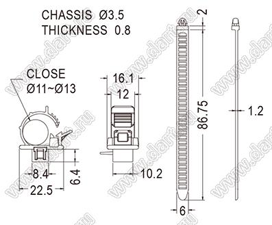 Каталог > Фурнитура для электронных устройств > Крепеж проводов и кабелей > Зажимы проводов с фиксацией в панель на защелках > SWPL серия, тип 1 > SWPL-66
