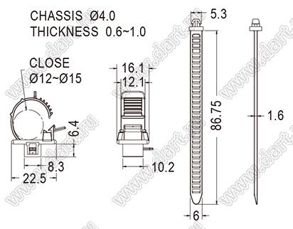 Каталог > Фурнитура для электронных устройств > Крепеж проводов и кабелей > Зажимы проводов с фиксацией в панель на защелках > SWPL серия, тип 1 > SWPL-88